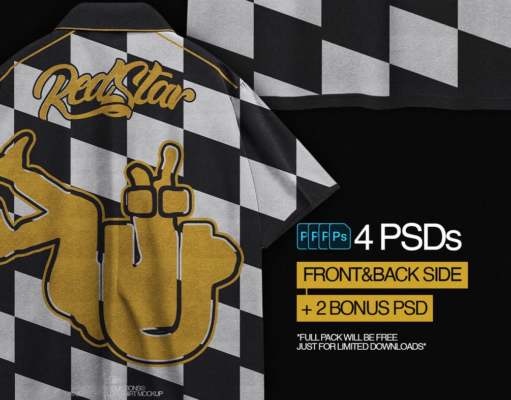 - Full Pack "4 PSDs" : Font&Back Side Mockup + 2 Bonus Mockup